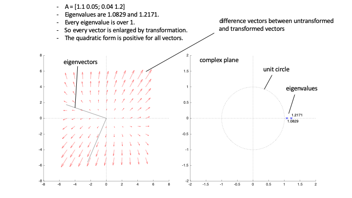 If all eigenvalues are positive, every vector is enlarged by the matrix and, thus, is in the same direction.